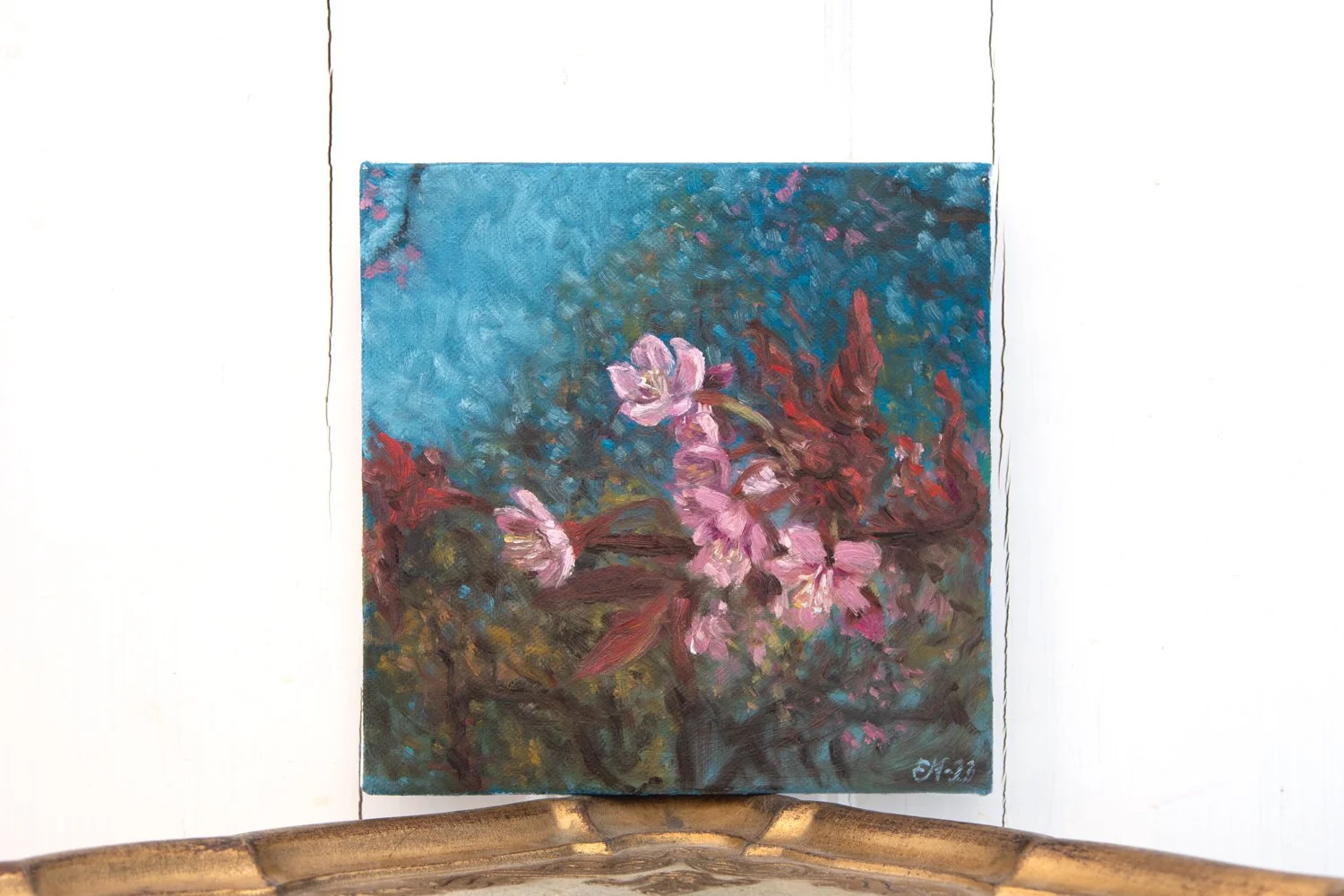 Vaaleanpunainen vieras / 20x20cm / Öljyväri kankaalle / 2023
