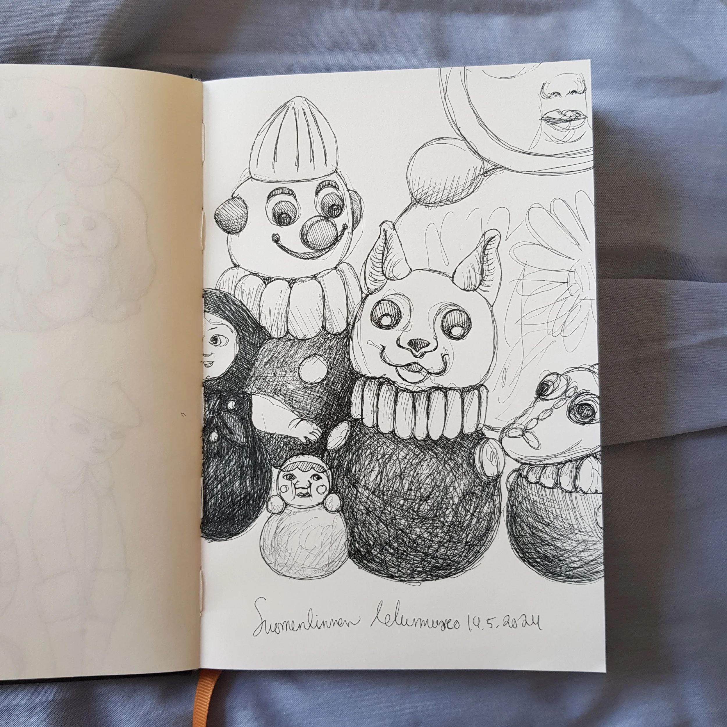 Piirroksia eri muistikirjoista joihin kohteet on piirretty paikan päälläsekä lyijykynäpiirroksia./Drawings from various sketchbooks drawn on location and some pencil drawings. Teen piirroksia myös tilaustyönä, lue lisää:/I also do commissioned drawings, read more: